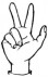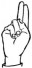На ћирилици написано ЛАБУДА НЕШИЋ састоји се из 11 слова [?]. Исписано ћириличном једноручном азбуком за глувонеме: